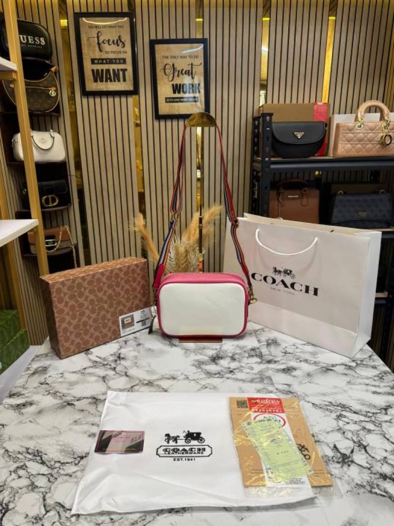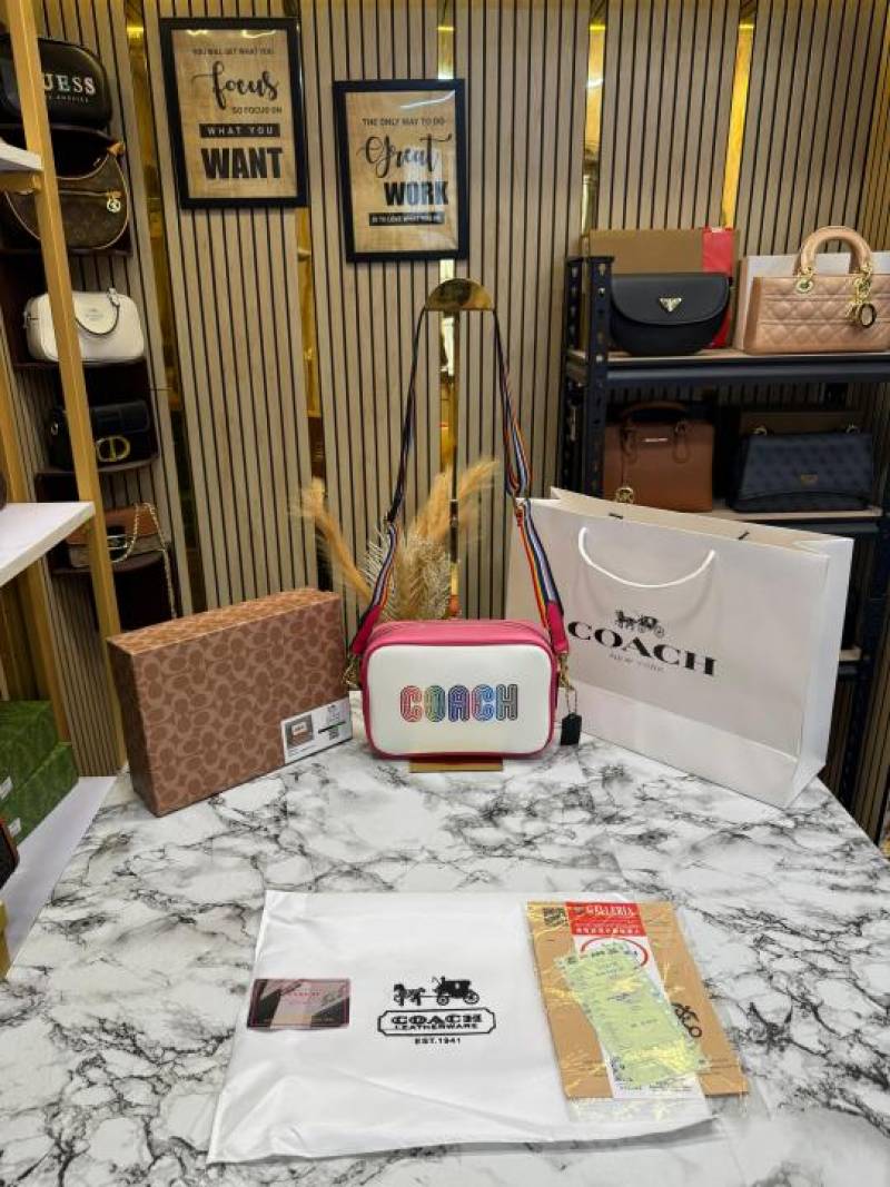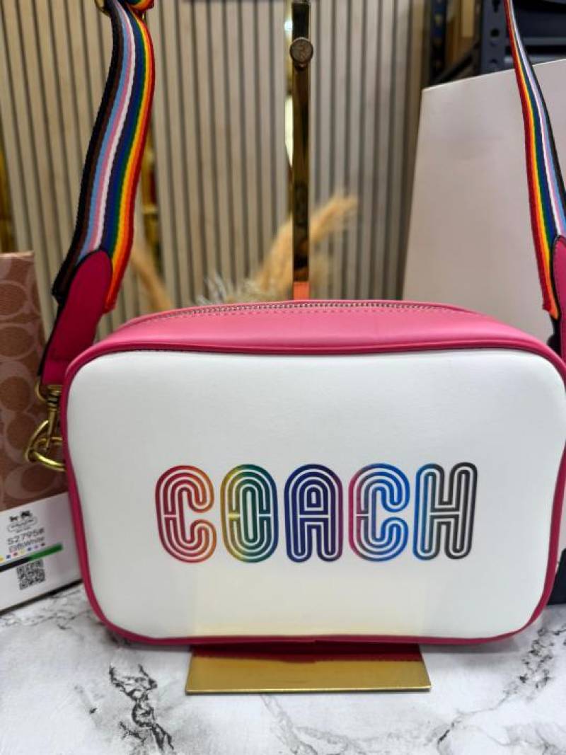 COAC_H RAINBOW SIGNATURE SLING WITH OG BOX AND DUST BAG INCLUDING CARRY BAG PREMIUM QUALITY (WHITE PINK) S2795