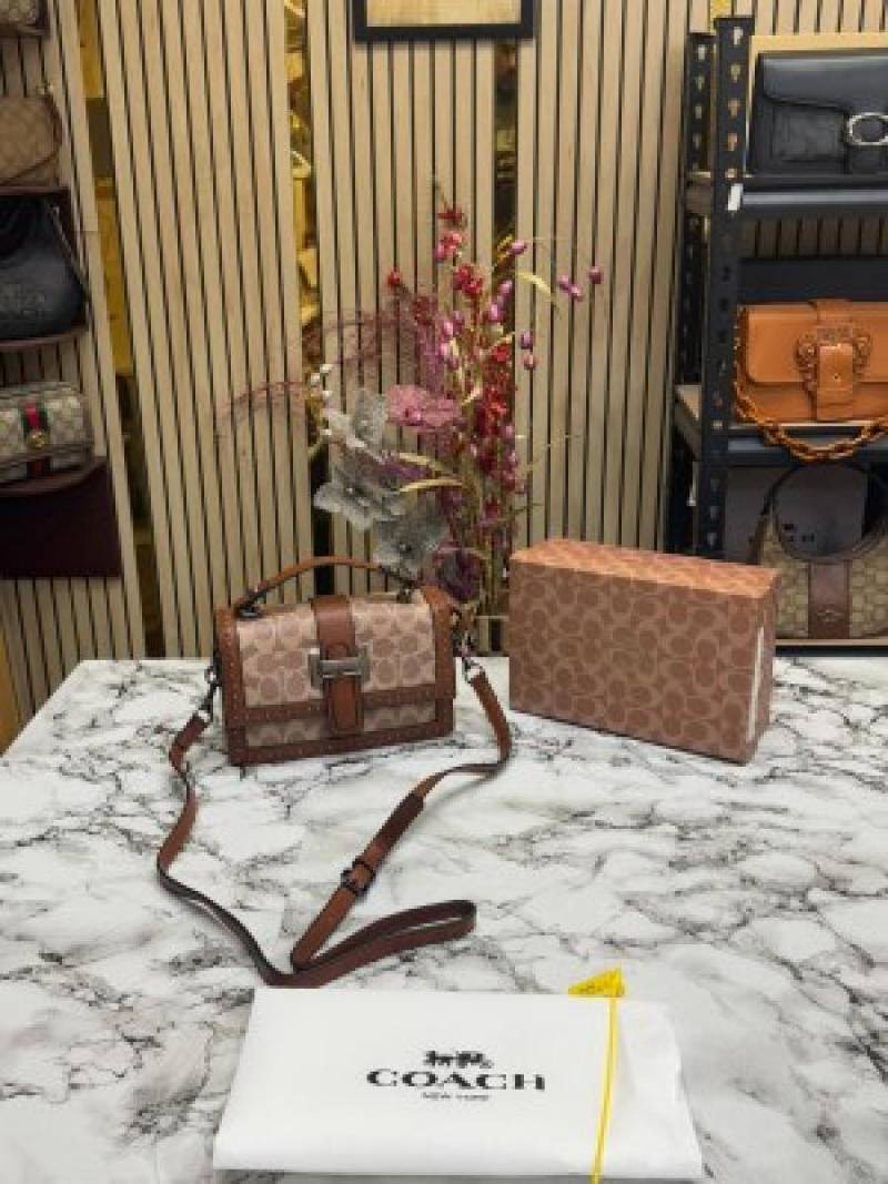COAC_H STUDDED SHOULDER BAG WITH DUST BAG AND SLIGHTLY DAMAGE BOX PREMIUM QUALITY (BROWN)