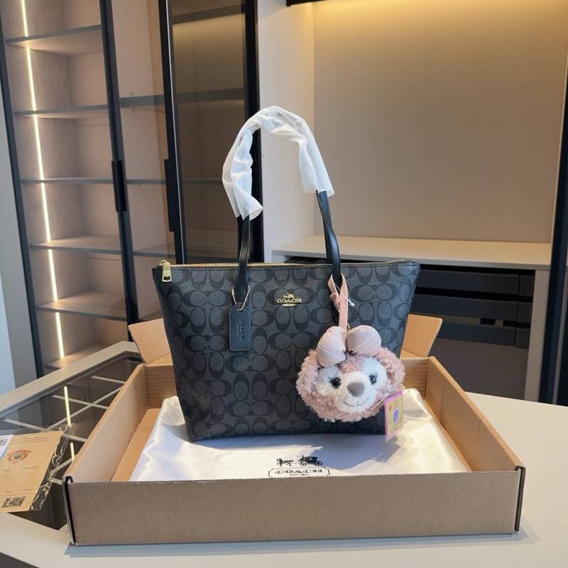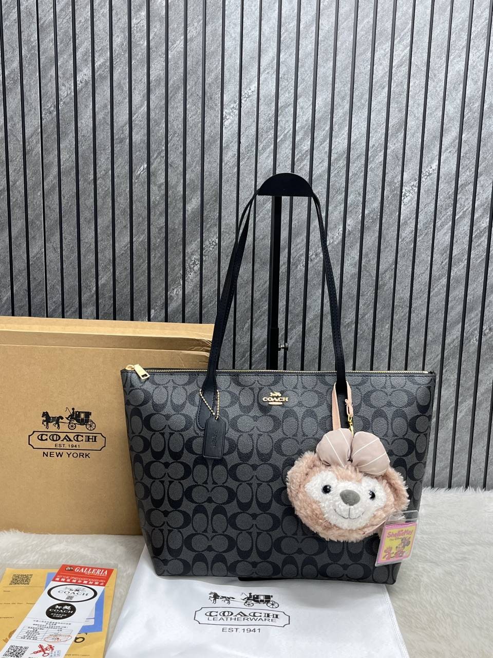 Coach_Black_Fiona_Top_ZipperTote_With_OriginalBox_TeddyDisneyCharm_DustCoverPacking