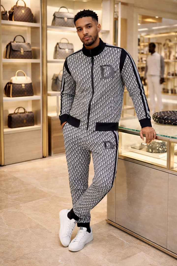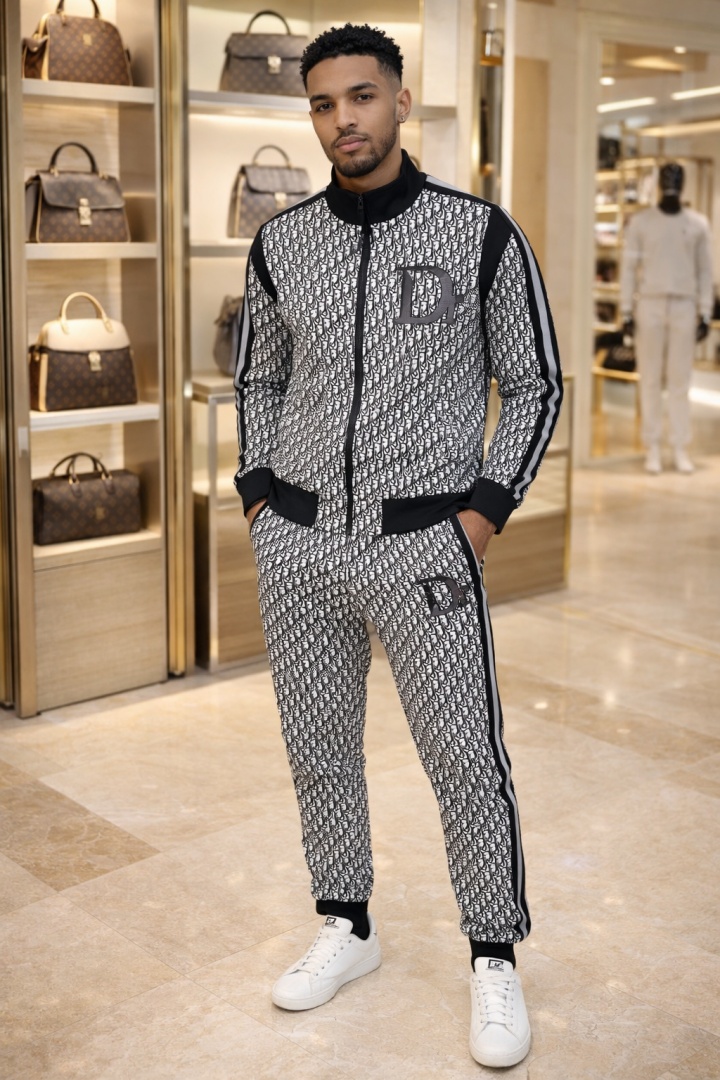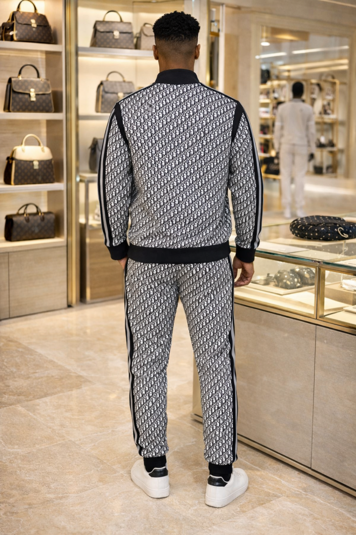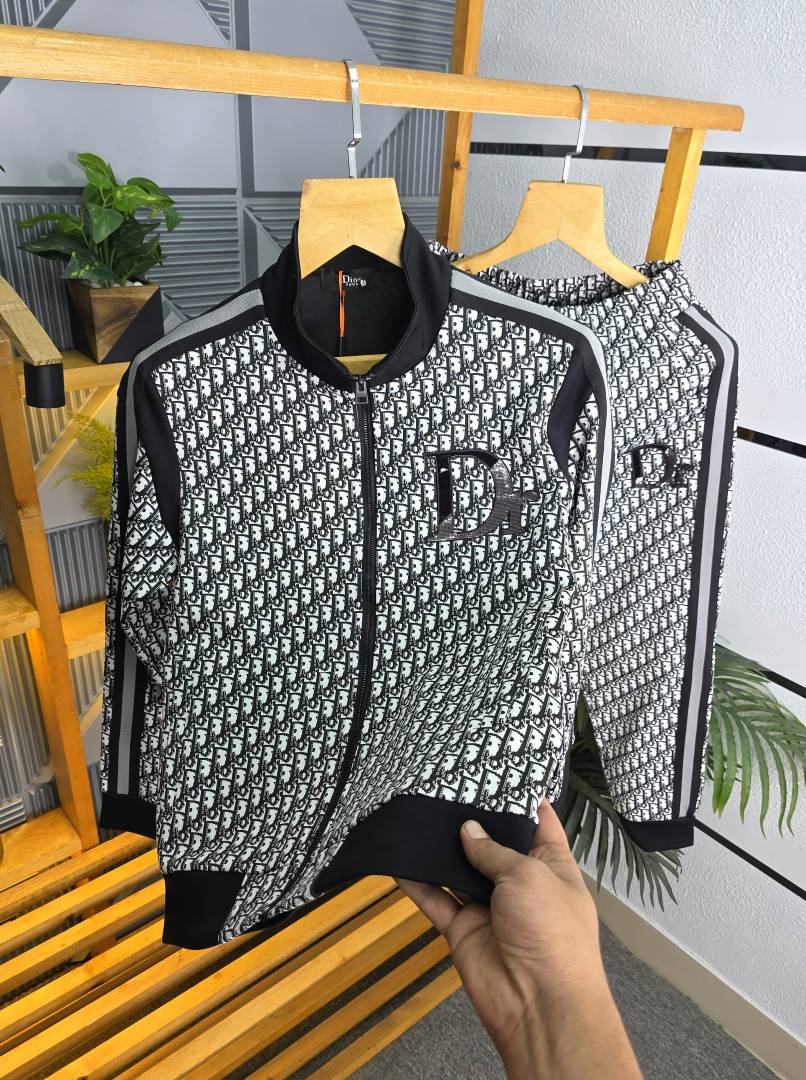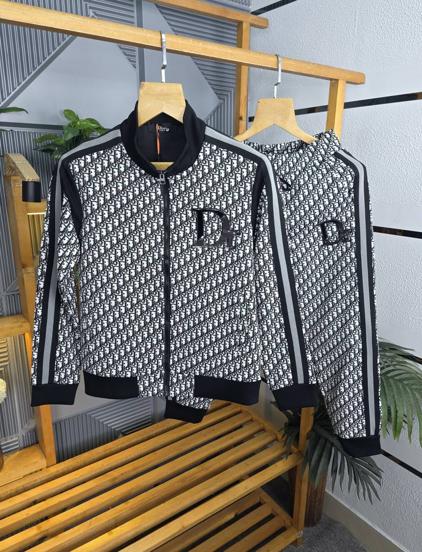 Christian Dio r Imported Black Monogram Premium Track Suit Brand Carry Bag Packing F3284-BL
