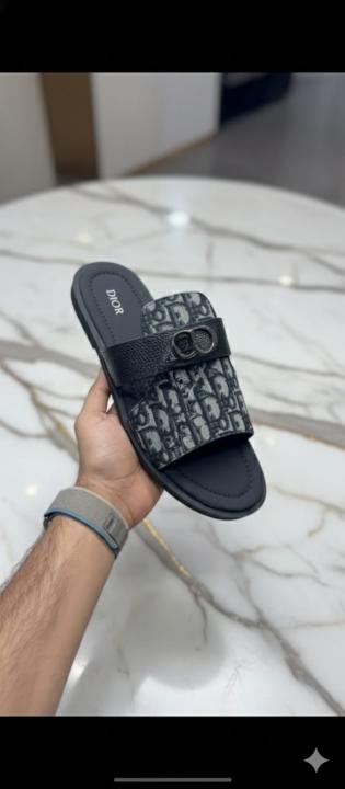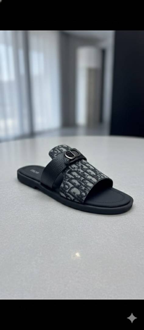Hermes Izmir Mens Leather Slippers Black Upper Red & Plaid-patterned Insole