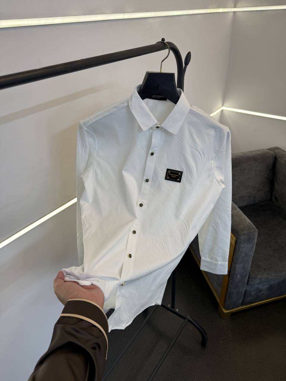 ? *Dolce and gabbana turkish imported fabric shirt with patch logo on and chest and brand button now available in stock*?