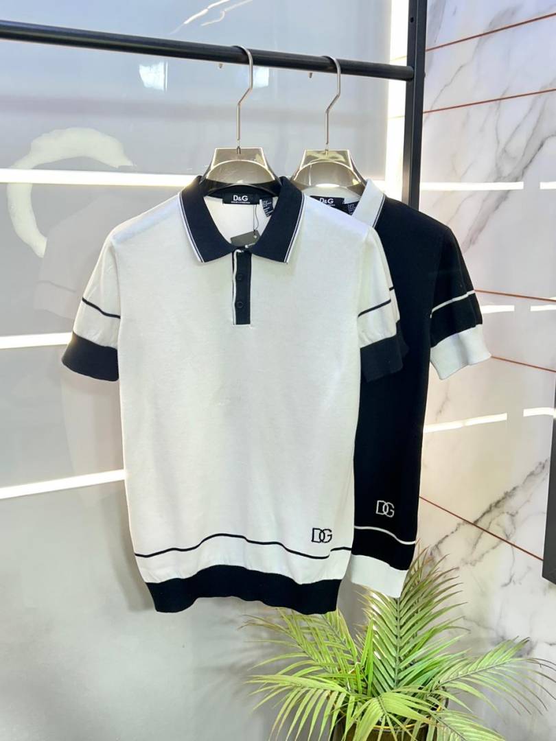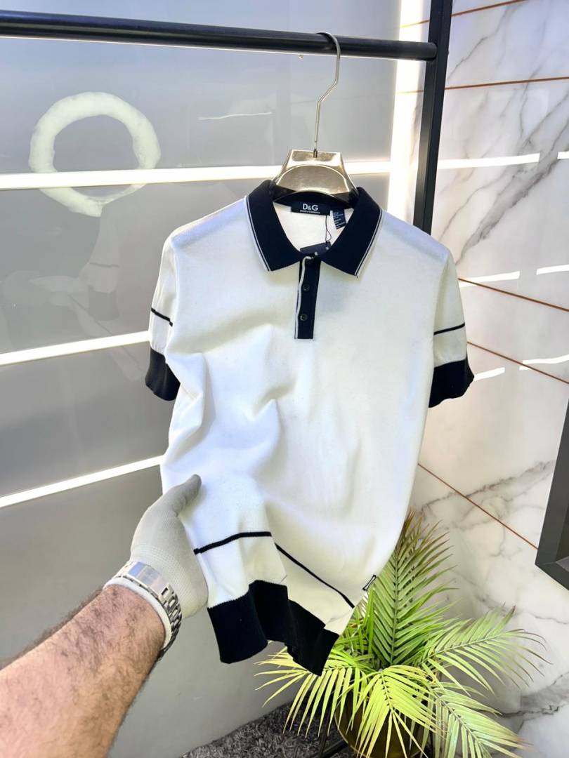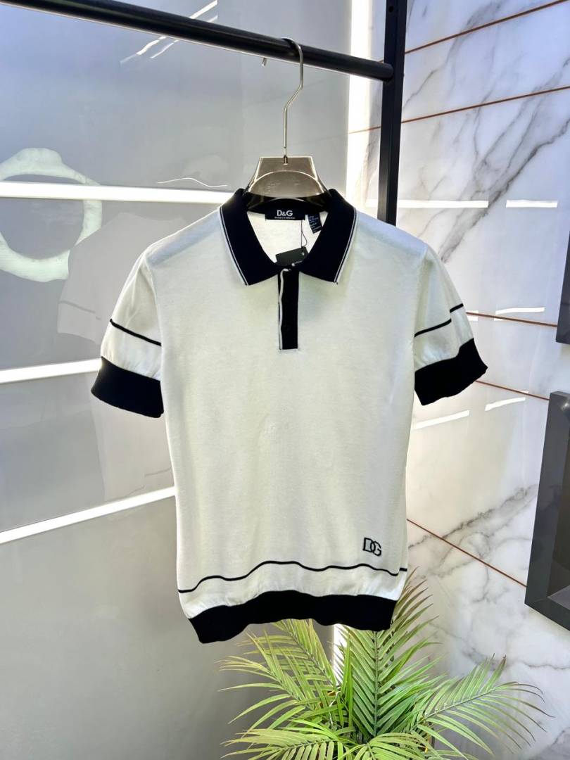 Dolce & Gabban a Imported knitted Super Premium White Collar Neck Polo T-shirt F3468-WH