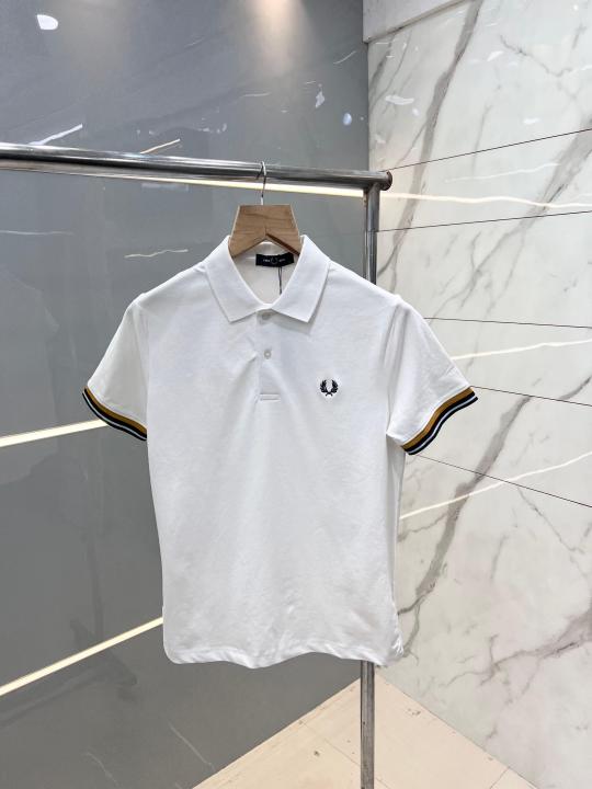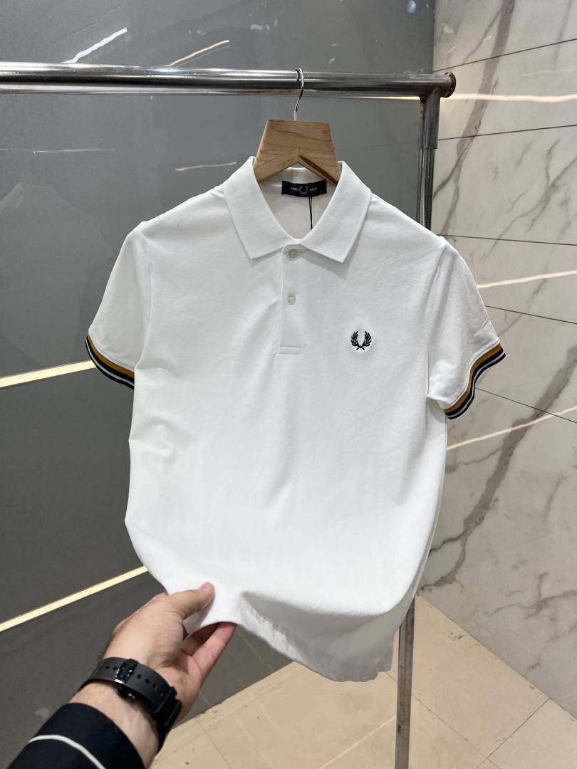 Fred Perr y Beige Premium Polo T shirt With 240 gsm Pique fabric with Shoulder Strip Design and Embroidered Logo 2732
