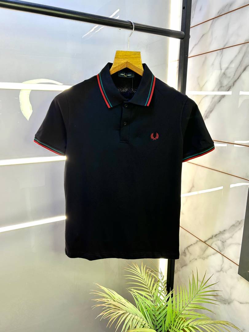 Fred Perry Black Polo Premium Collar Neck T-shirt F2998-B2