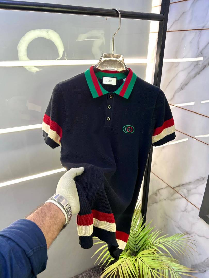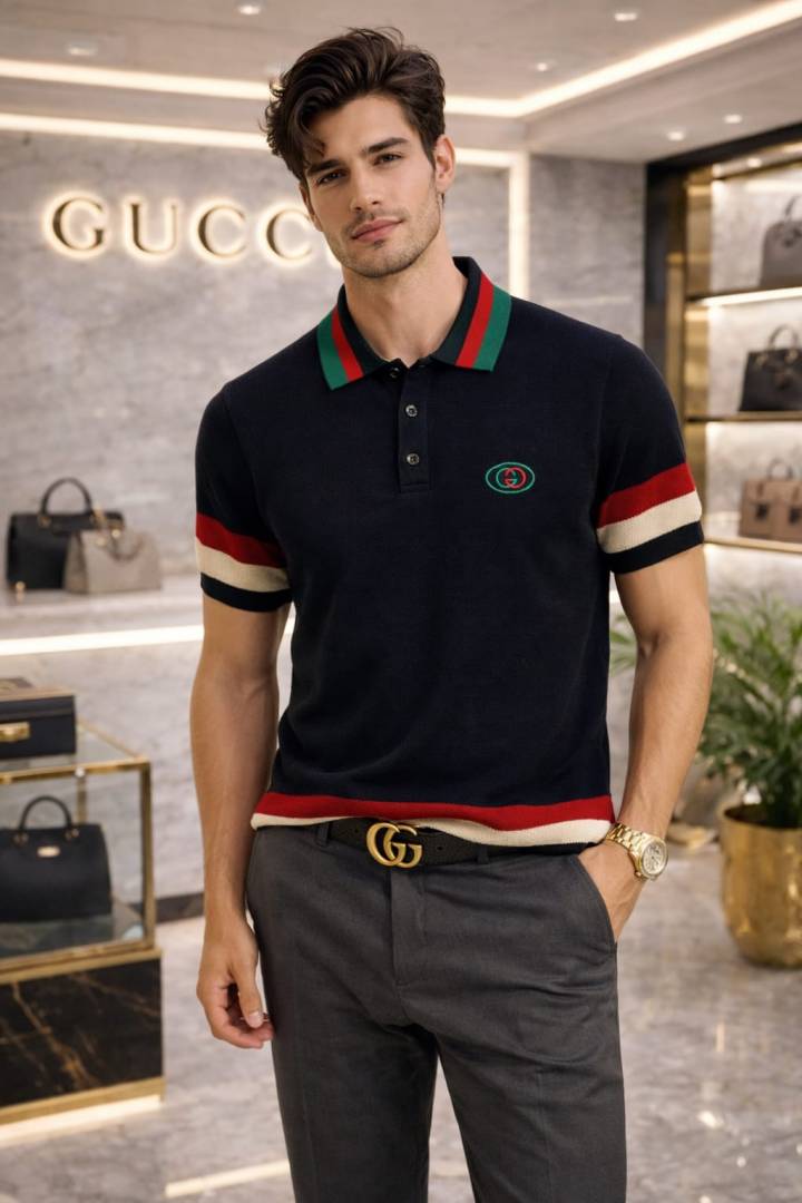 Gucc i Black Imported knitted Premium Collar Neck Polo T-shirt F3440-BL