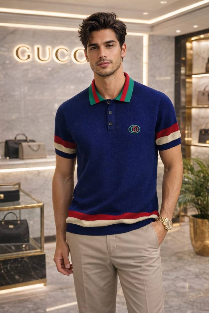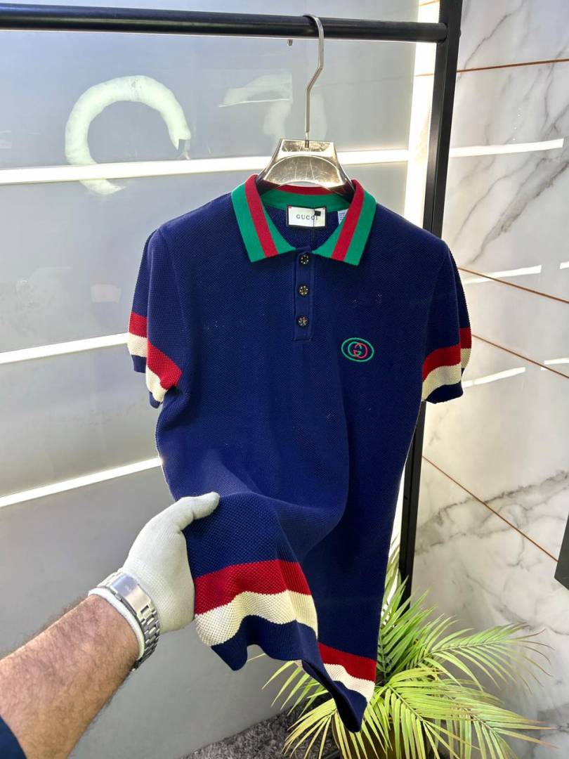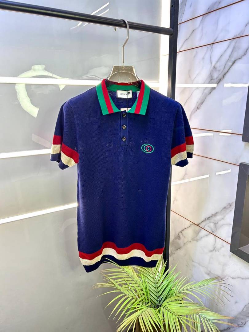 Gucc i Blue Imported knitted Premium Collar Neck Polo T-shirt F3440-BU