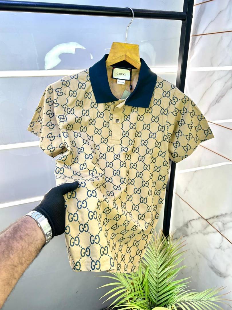 Gucc i Brown Monogram Imported Polo Neck Premium Collar T-shirt F1856-BR