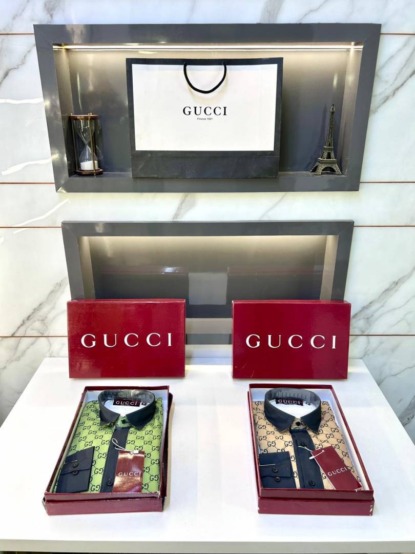 Gucc i Green Monogram Premium Shirt With Brand Box Packing And Carry Bag F3207-GR