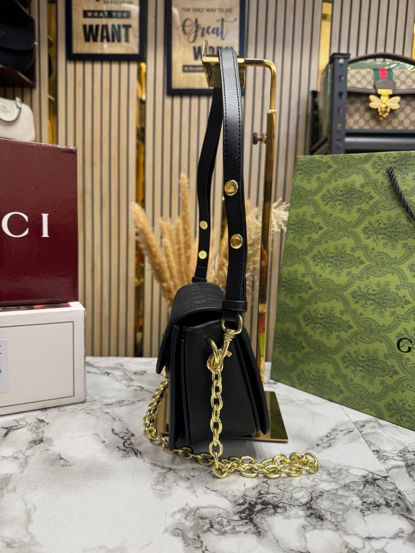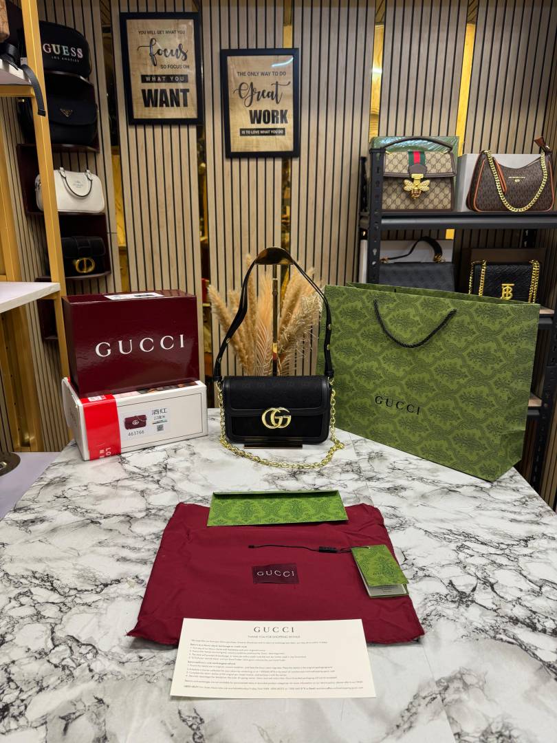 GUCC_I GG CANVAS JACQUARD SHOULDER BAG WITH DOUBLE OG BOX AND DUST BAG INCLUDES CARRY BAG (46377-BLACK)