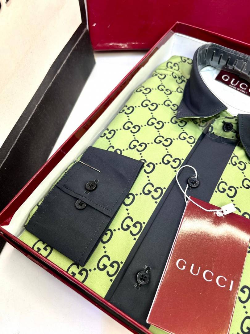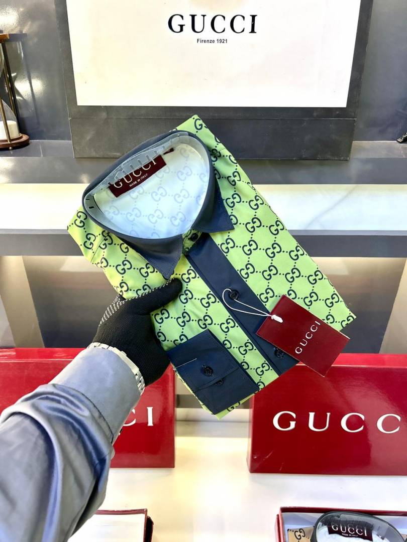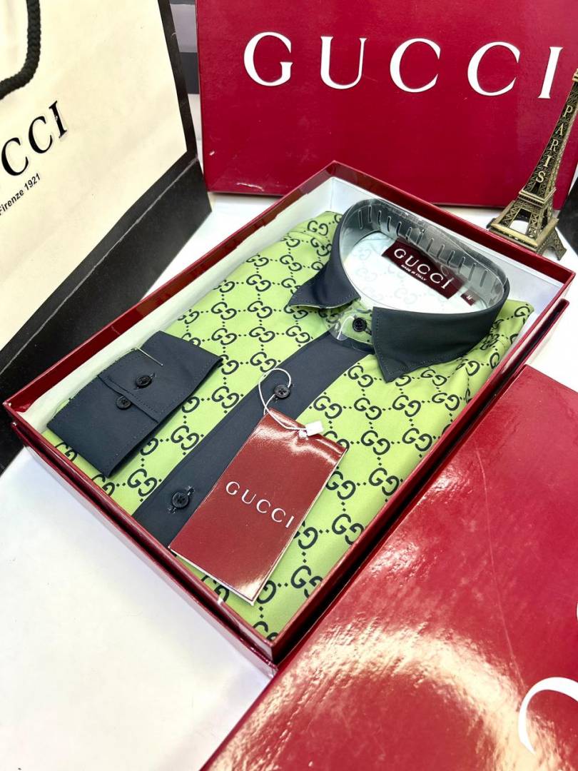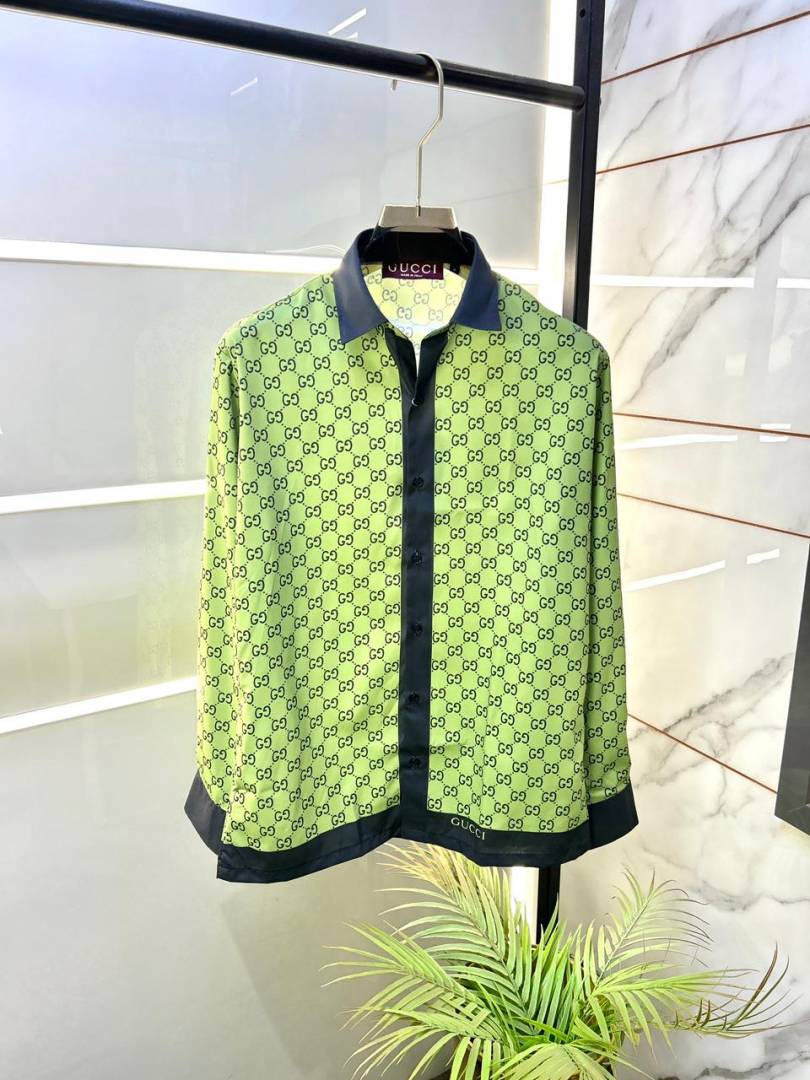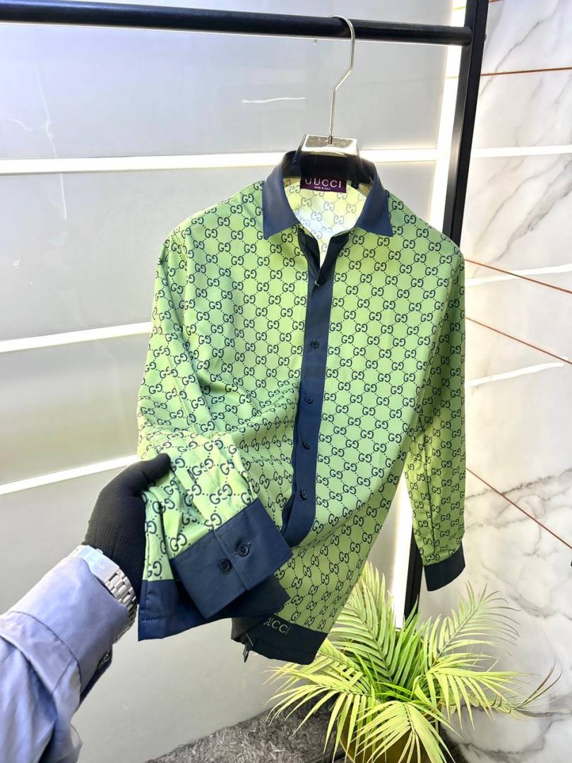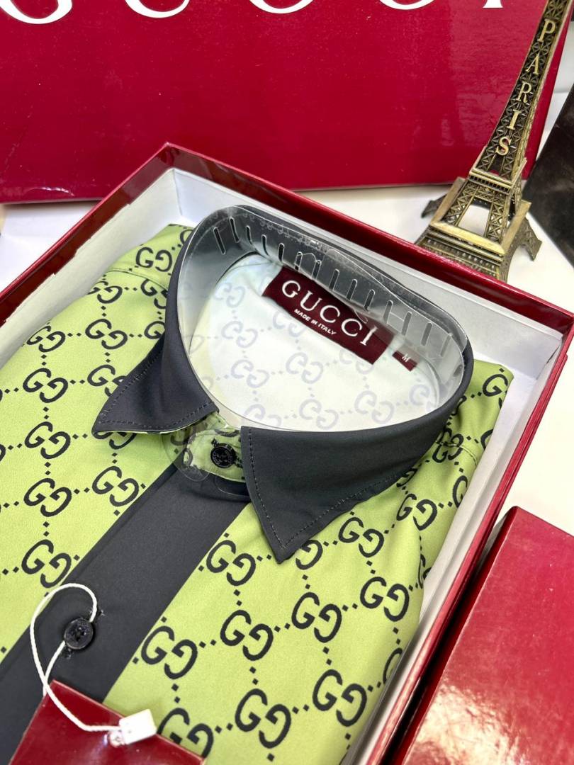 Gucc i Green Monogram Premium Shirt With Brand Box Packing And Carry Bag F3207-GR