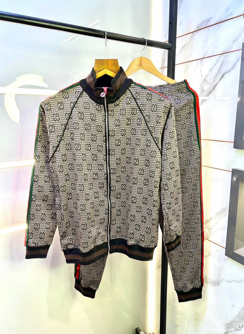 Gucc i Imported Dark Brown Monogram Super Premium Track Suit With Brand Carry Bag F3149-DBR