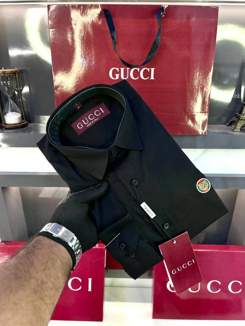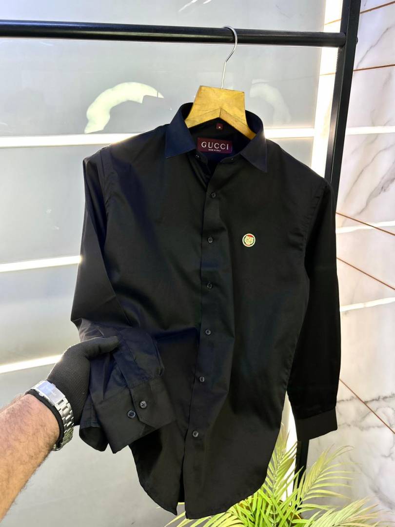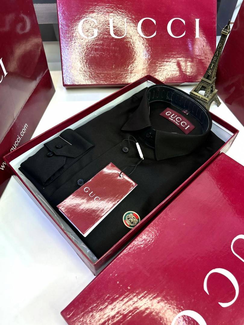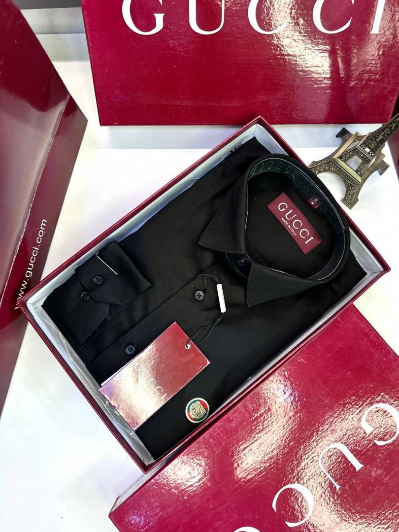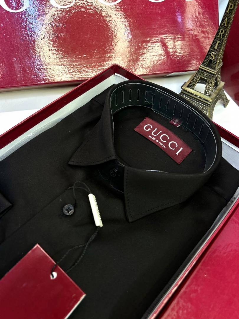Gucc i Logo Black Premium Shirt With Brand Box Packing and Carry Bag F2980-BL