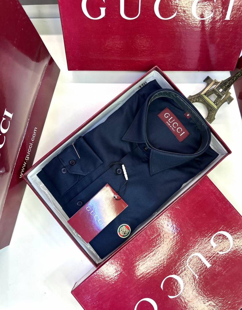 Gucc i Logo Navy Premium Shirt With Brand Box Packing and Carry Bag F2980-NY