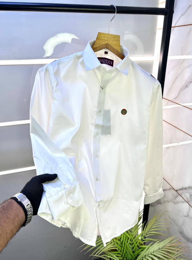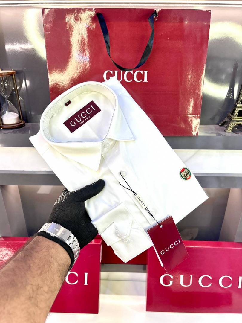 Gucc i Logo White Premium Shirt With Brand Box Packing and Carry Bag F2980-WH