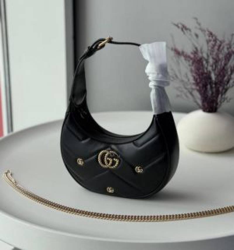 Gucci_GG_Marmont_Half_Moon_Shaped_Black_Calfskin_Gold_Hardware_Black_770983_With_OG_Red_Box_&_Dust_Bag_5500
