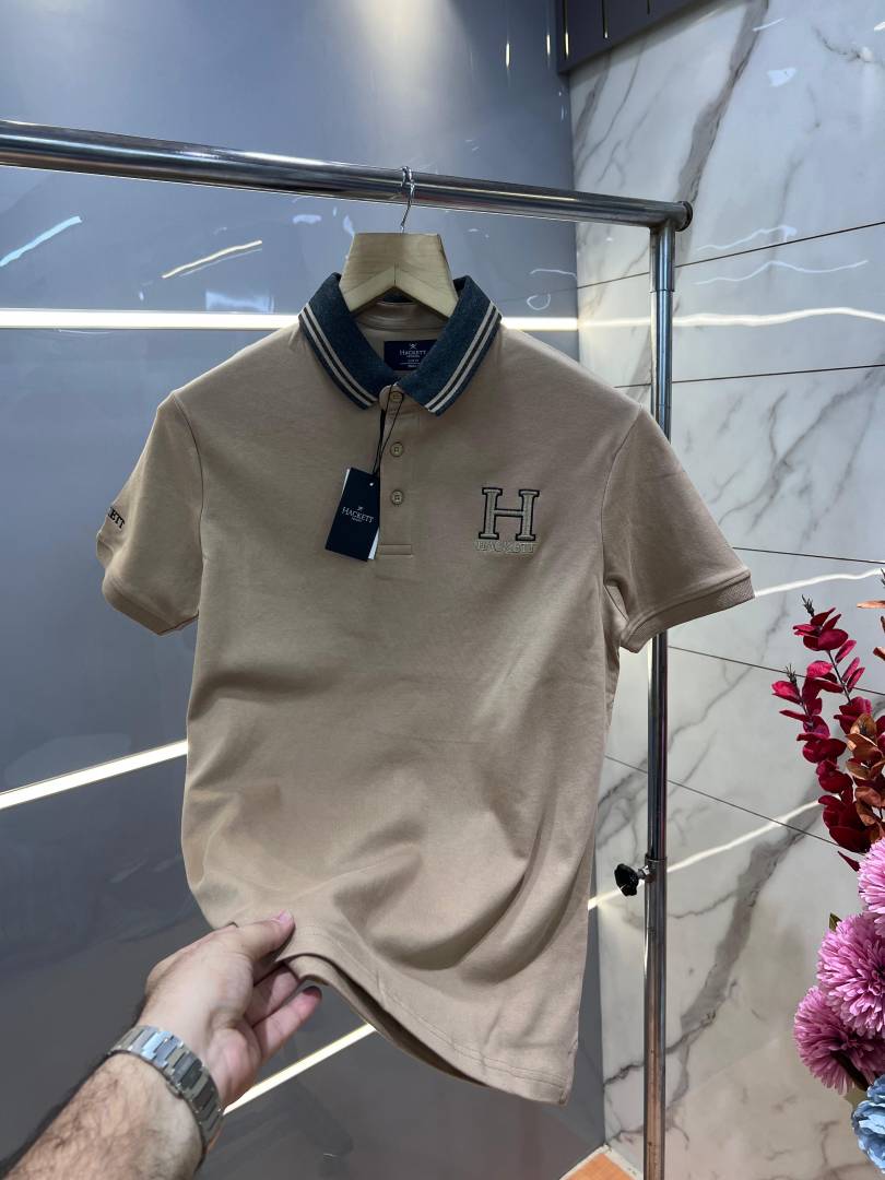 Hacke t Beige Premium 240 gsm interlock compact cotton fabric Polo Tshirt with Collar Design and Embroidered Logo 3215