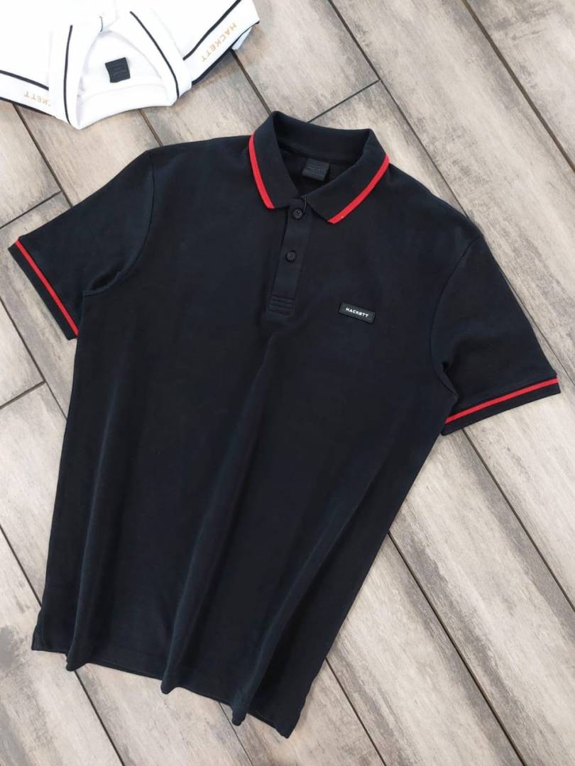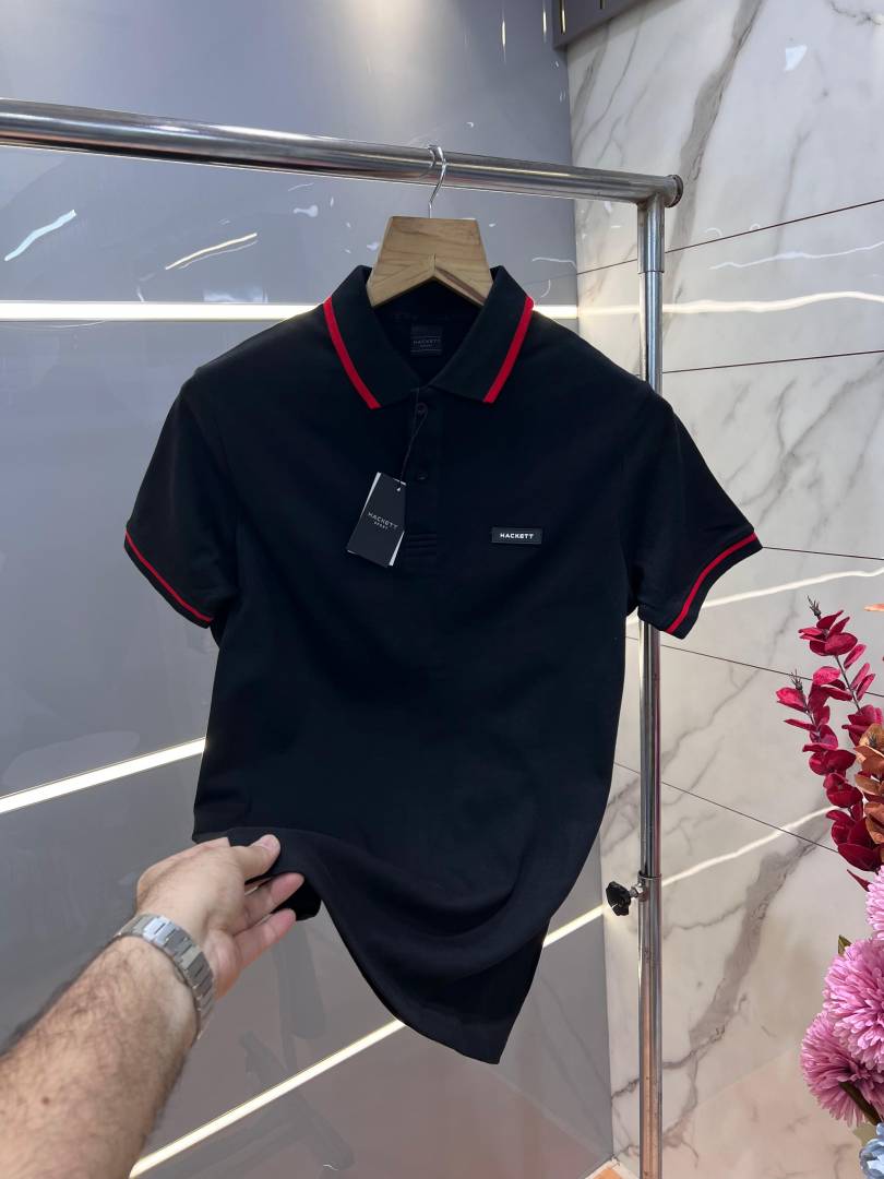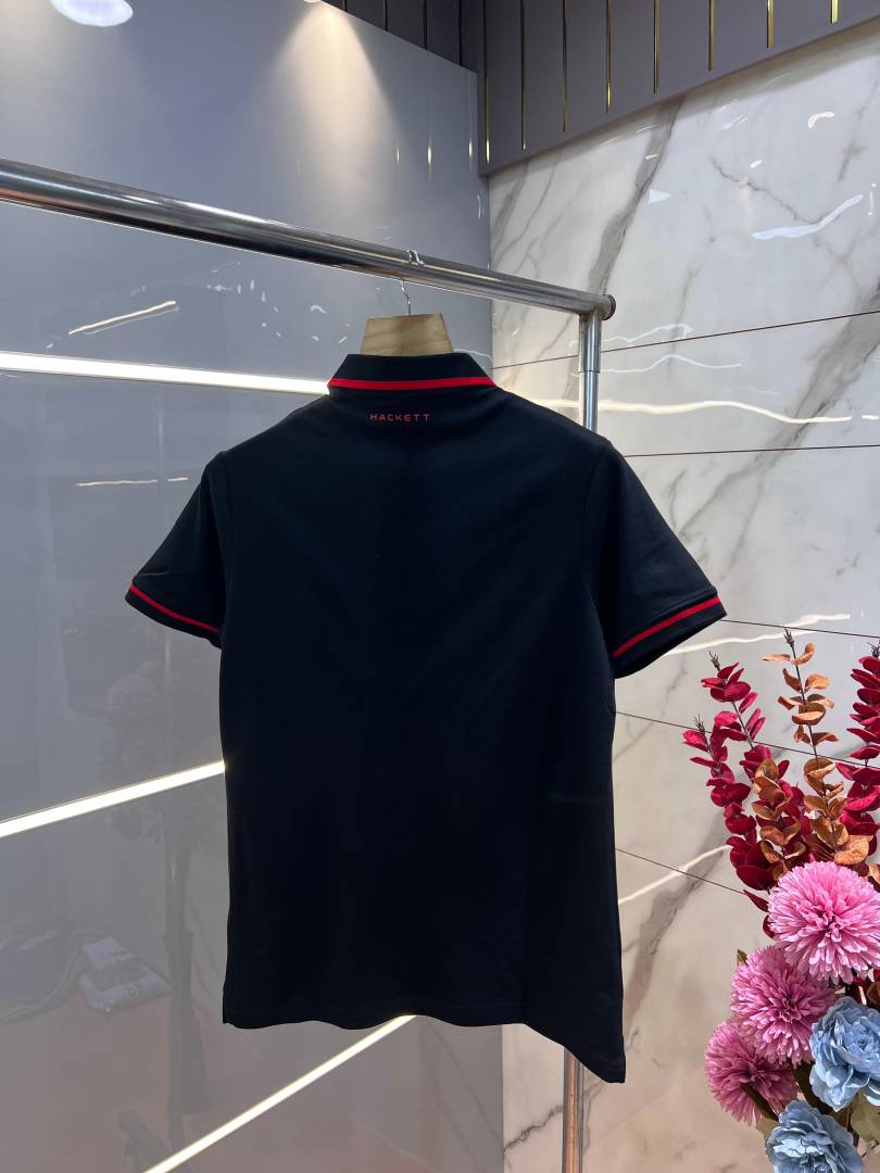 Hacke t Black Premium 240 gsm interlock compact cotton fabric Polo Tshirt with Collar Design and Patch Logo 3218