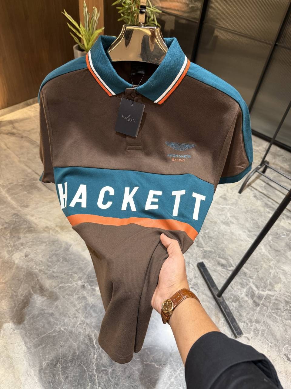 Hacket t Aston Martin Brown polo Tshirt Premium