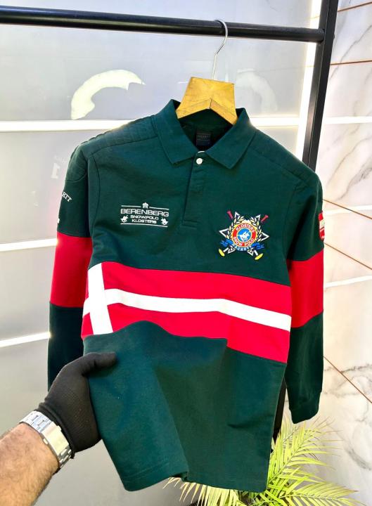 Hacket t Green Polo Neck Back Print Full Sleeves Premium Collar T-shirt F3087-GR
