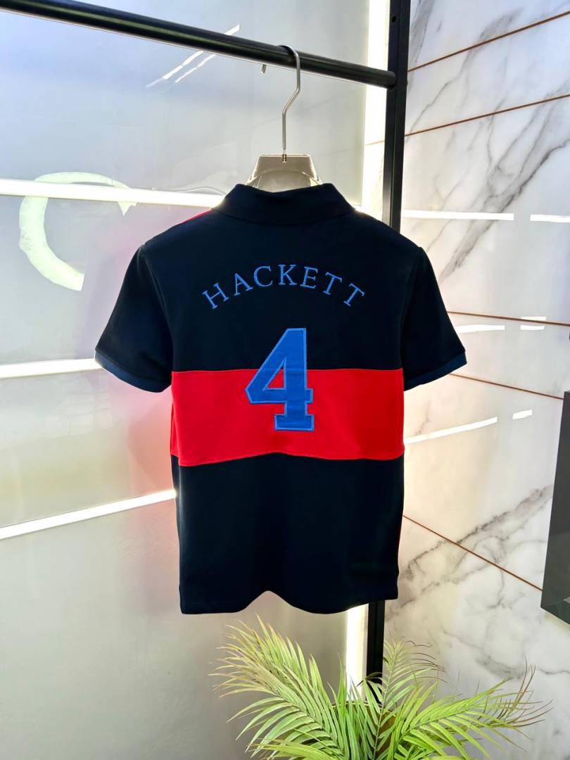 Hacket t London Navy Back Print Collar Neck Premium Polo T-shirt F3505-NY