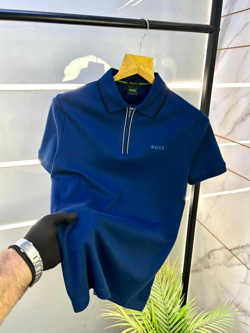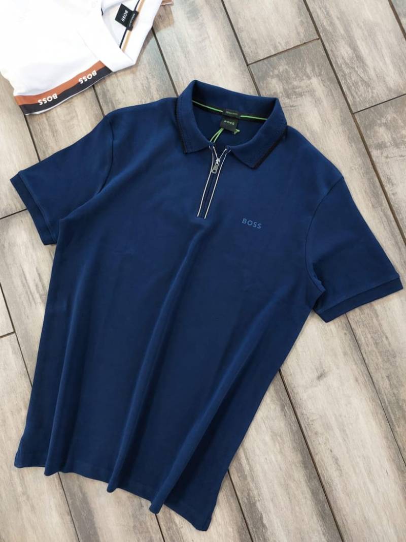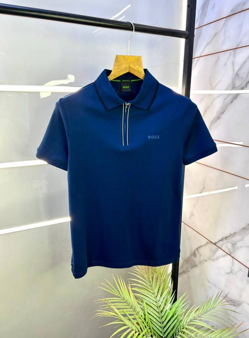 Hugo_Boss Blue Zipper Premium Collar Neck Polo T-shirt F3050-BU