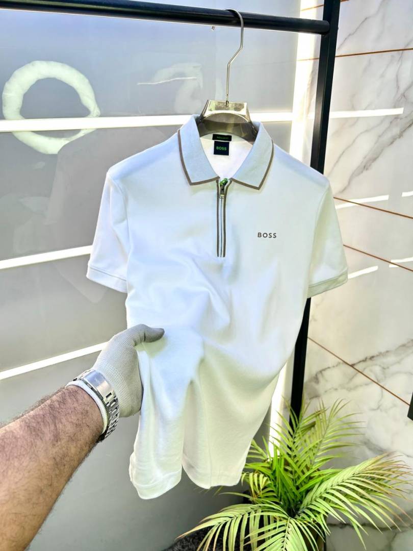 Hugo_Boss White Collar Neck Premium Polo T-shirt F3396-WH