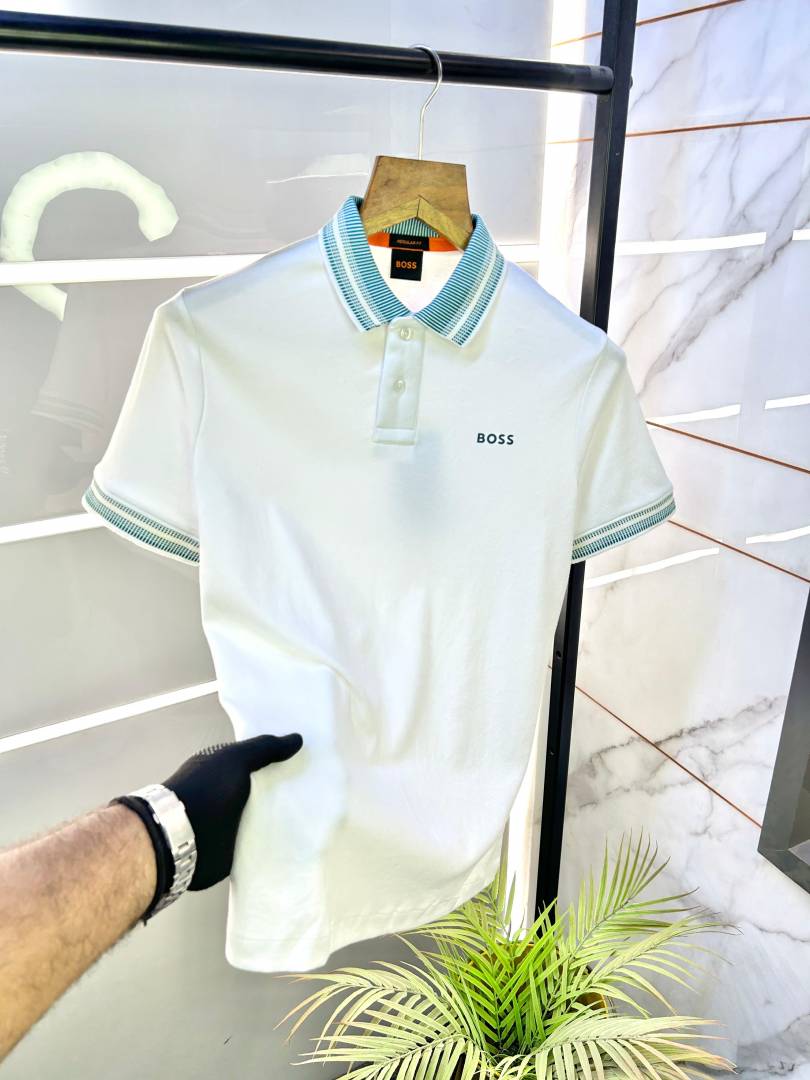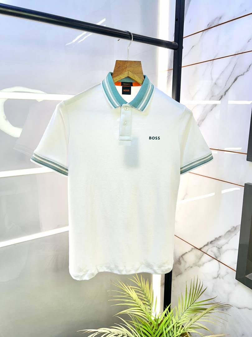 Hugo_Boss White Premium Collar Neck Polo T-shirt F2640-WH
