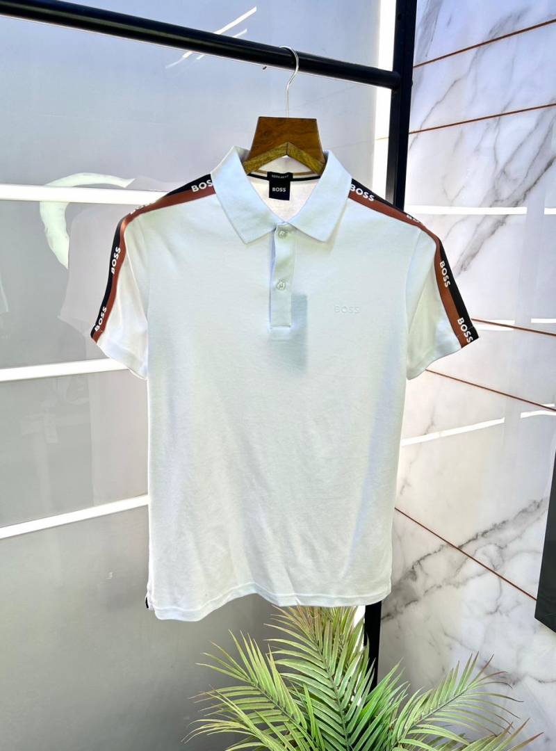 Hugo_Boss White Premium Collar Neck Polo T-shirt F3050-WH