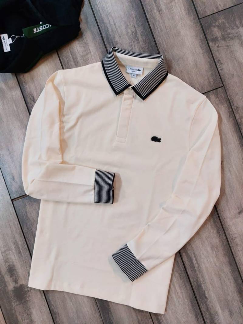 Lacost e White Polo Neck Full Sleeves Premium Collar T-shirt F3129-W2
