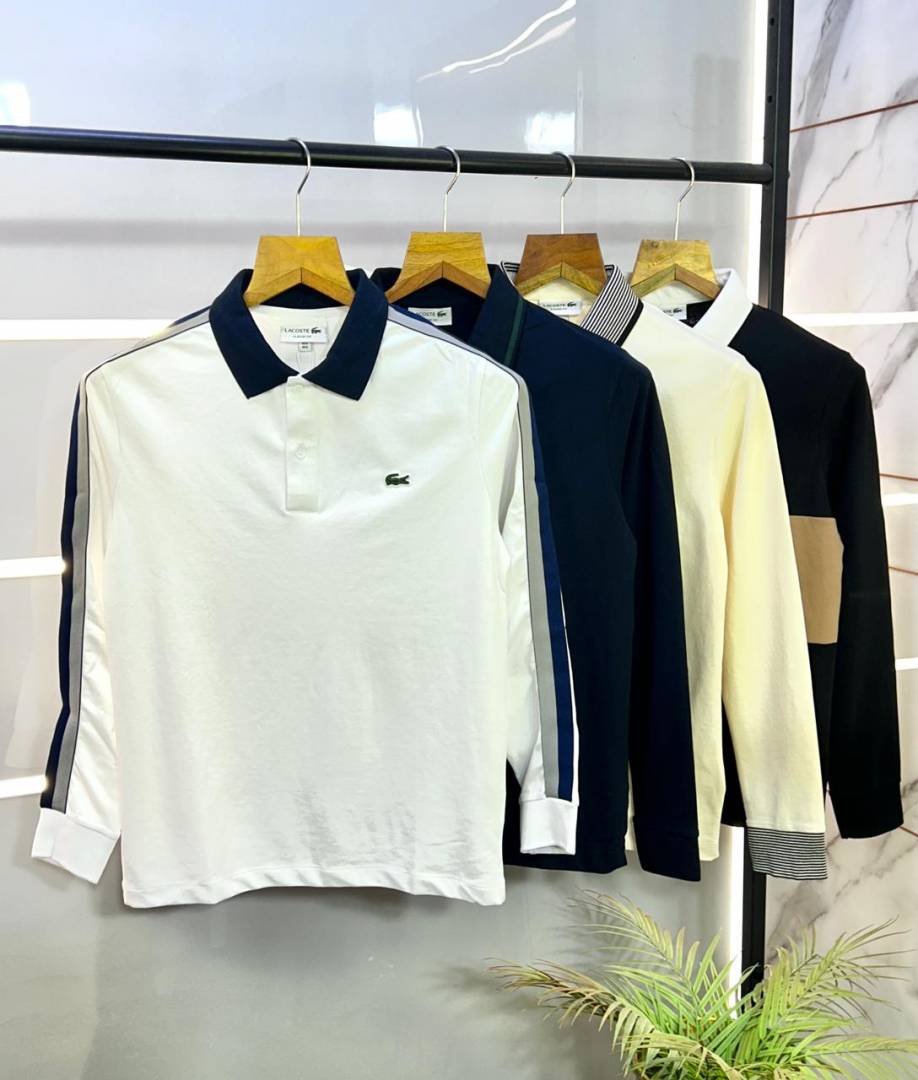 Lacost e Black Polo Neck Full Sleeves Premium Collar T-shirt F3129-B1