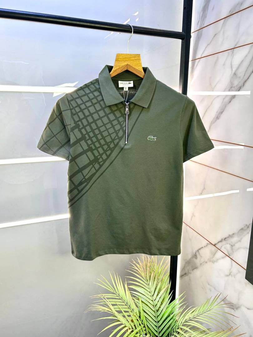 Lacost e Green Zipper Polo Premium Collar Neck T-shirt F3048-GR