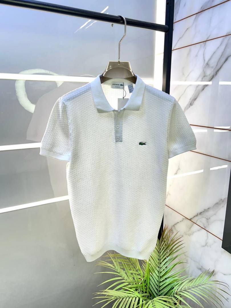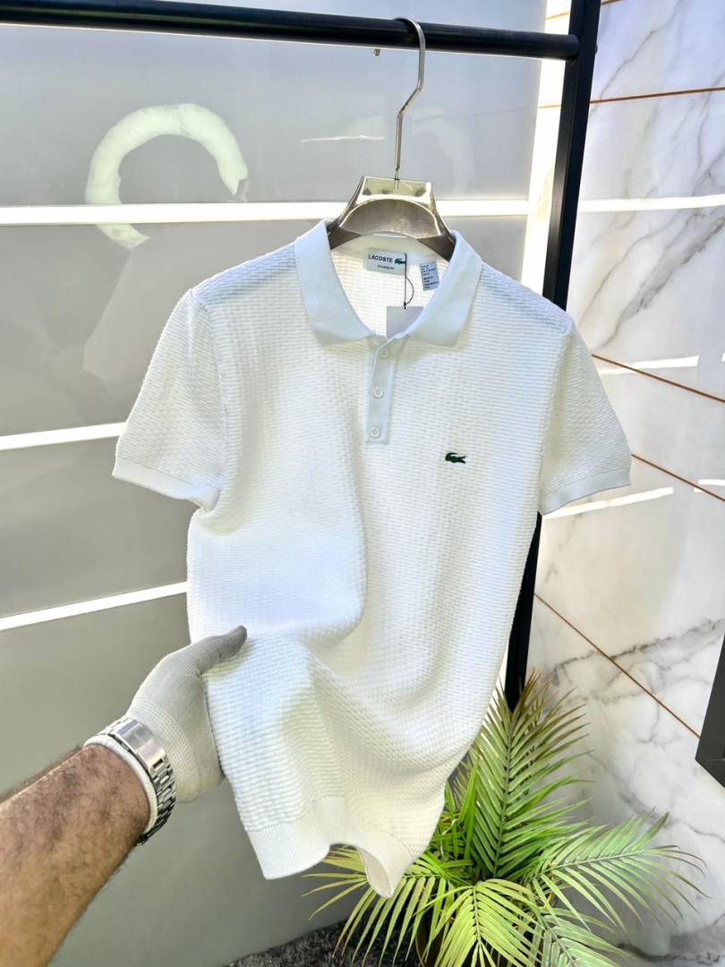 Lacost e Imported knitted Super Premium White Collar Neck Polo T-shirt F3466-WH