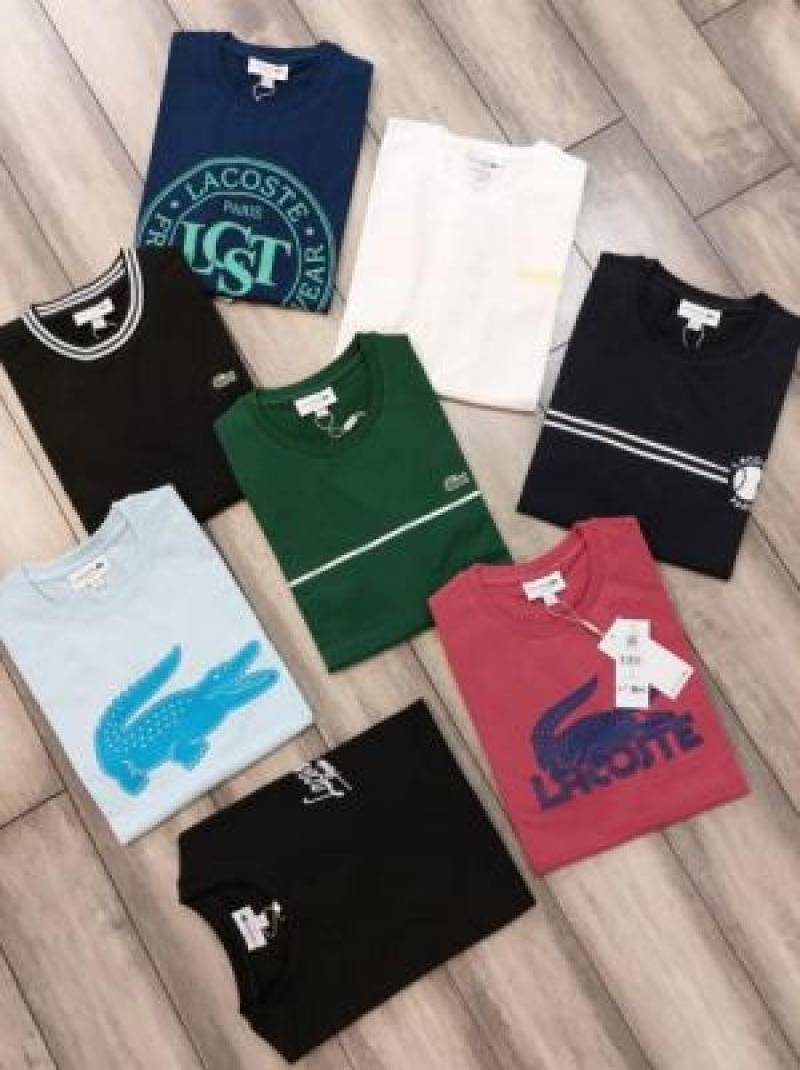 Lacost e TomatoRed Premium Imported 200 GSM Interlock Lycra Fabric Round Neck Printed Logo Tshirt 2663