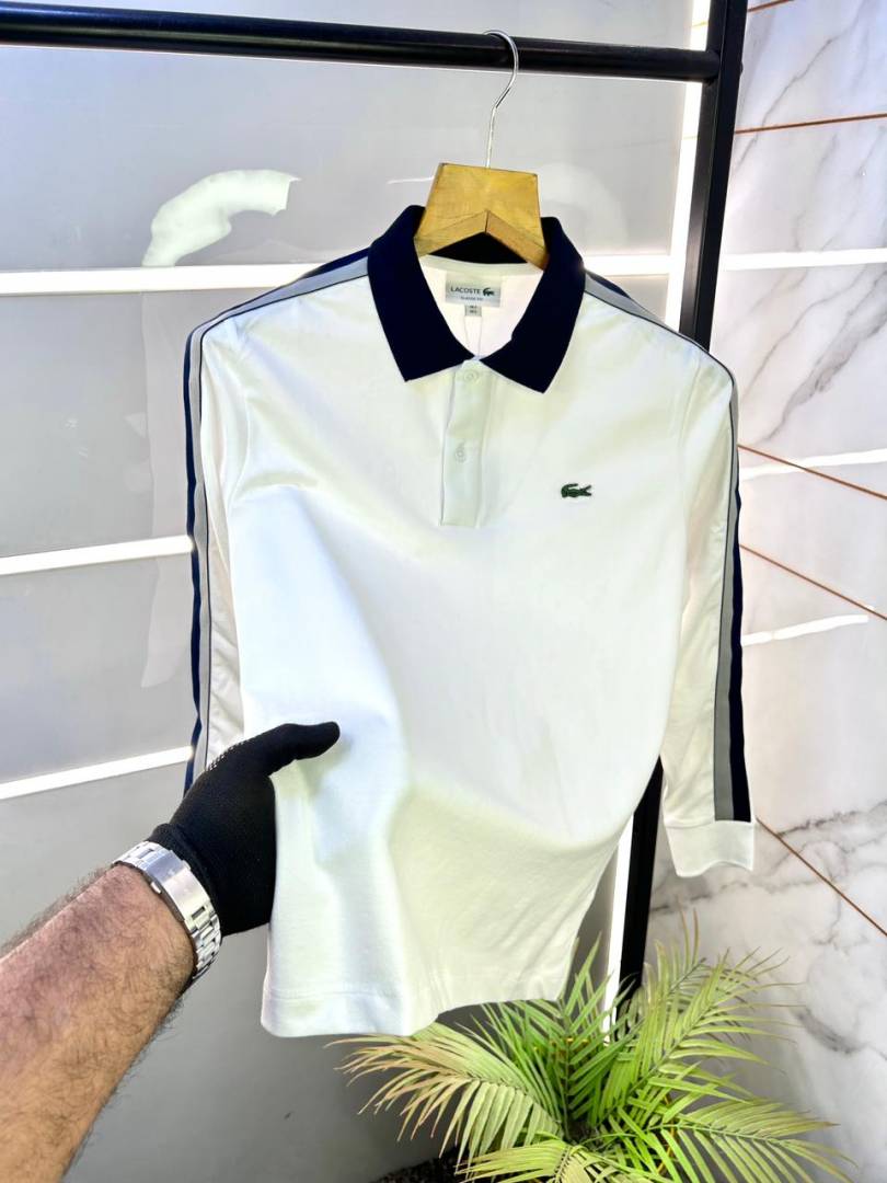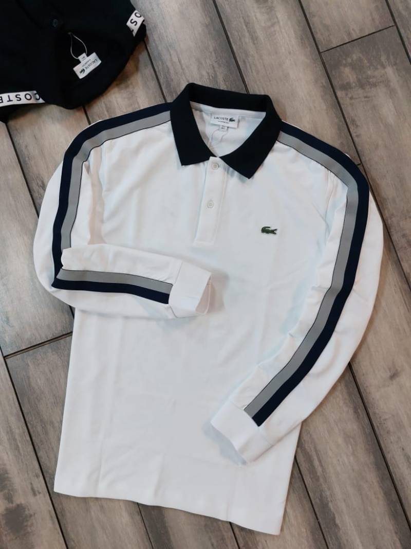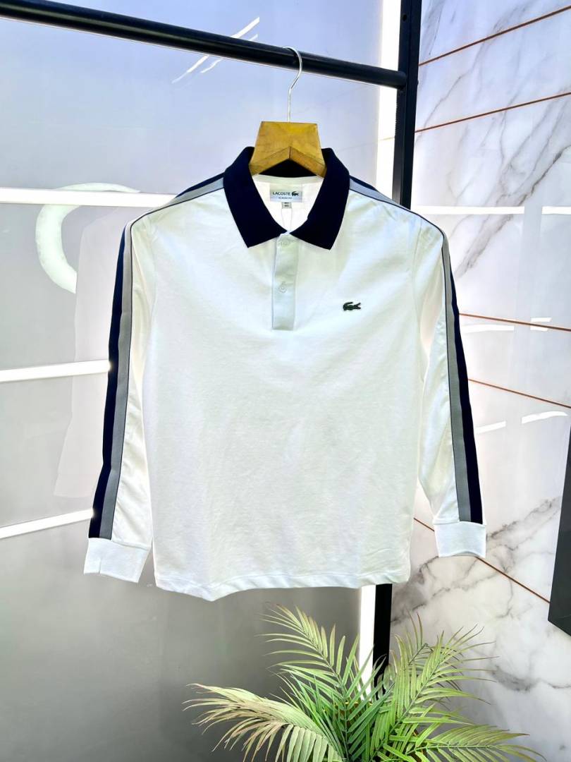 Lacost e White Polo Neck Full Sleeves Premium Collar T-shirt F3129-W2