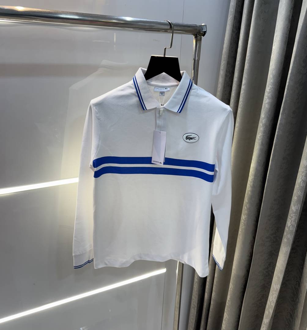 Lacost e White Premium Classic Full Sleeves Polo T-Shirt