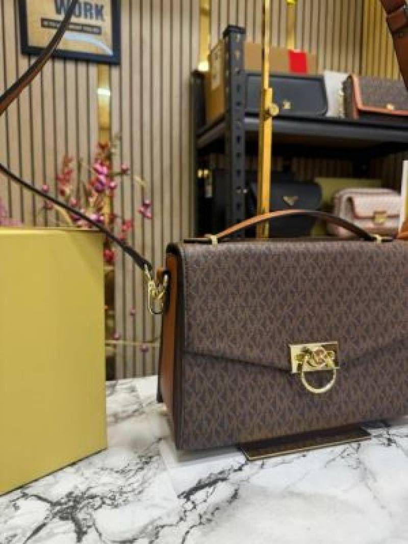 Michael_Kors Hendrix Signature Shoulder Bag With Box Dust Bag Including Carry Bag (Brown)