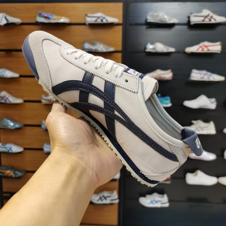 The Onitsuka Tiger Mexico 66 "Birch/Peacoat" is the gold standard for those who love the "Old Money" or preppy aesthetic. This 7A Premium Quality edition perfectly replicates the warm, off-white "Birch" leather base accented by deep navy "Peacoat" Tiger stripes. It?s a colorway that feels more formal and polished than the standard White/Blue, making it a favorite for those who want a sneaker that pairs beautifully with beige trousers, navy blazers, or academic-style outfits.