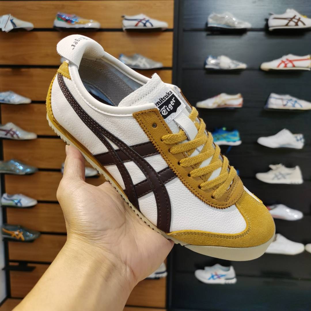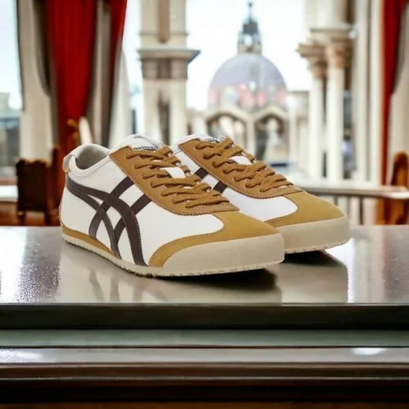 The Onitsuka Tiger Mexico 66 in "Cream/Licorice Brown" is a sophisticated, warm-toned take on the legendary 1966 track icon. This colorway features a rich "Cream" leather base paired with deep "Licorice Brown" Tiger stripes, offering a vintage, organic look that is much more versatile than the standard high-contrast black or red models. This 7A Premium Quality edition is a favorite in the 2026 Indian market for those seeking the "Quiet Luxury" aesthetic.