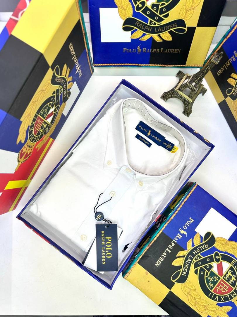 Ralp h Lauren White Embroidery Logo Premium Shirt With Brand Box Packing F2891-WH