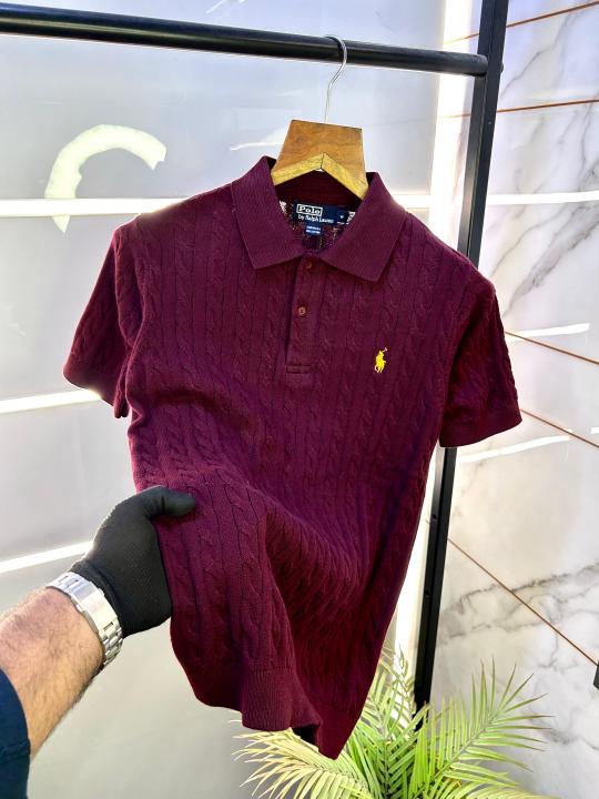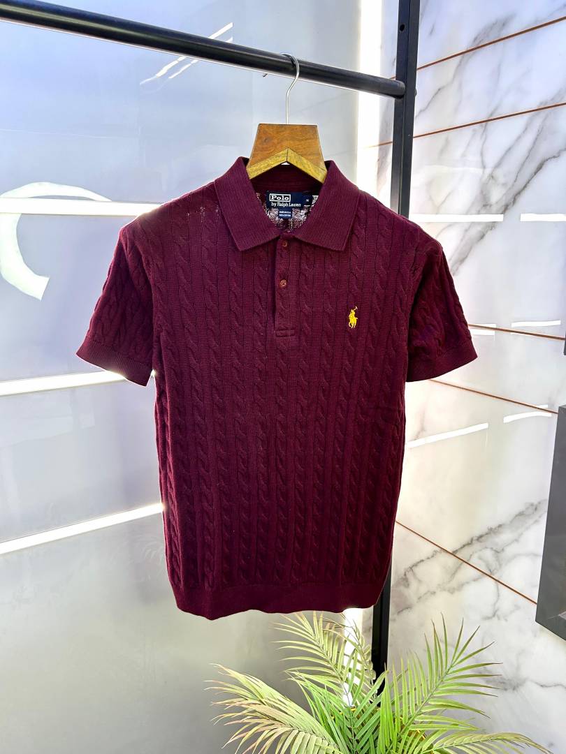 Ralph_Lauren Maroon Imported Knitted Polo Collar Neck T-shirt F2767-MA