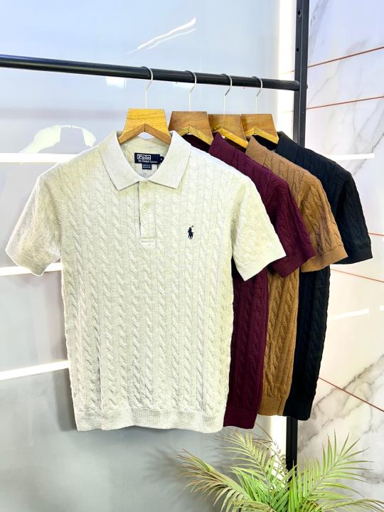 Ralph_Lauren Brown Imported Knitted Polo Collar Neck T-shirt F2767-BR