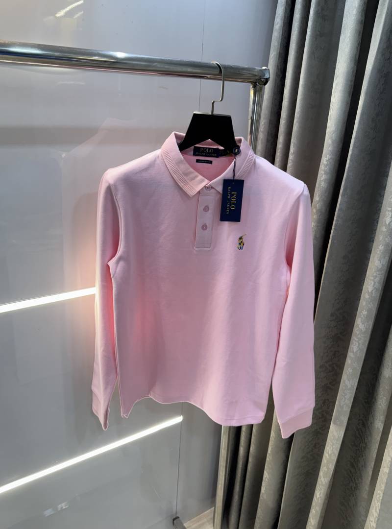 Ralph Lauren Pink Embroidery Logo Premium Full Sleeve Polo T-Shirt