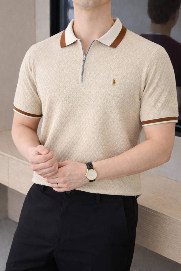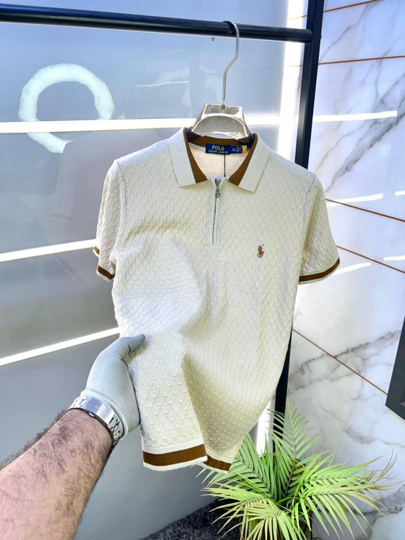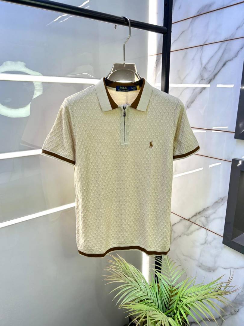 Ralph_Lauren Polo Imported knitted Cream Super Premium Collar Neck T-shirt F3486-CR