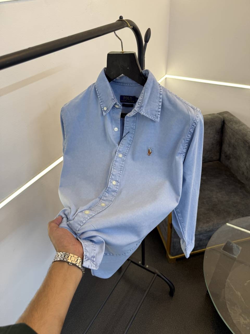Ralphlauren sky blue denim imported shirt with embroidery logo on chest