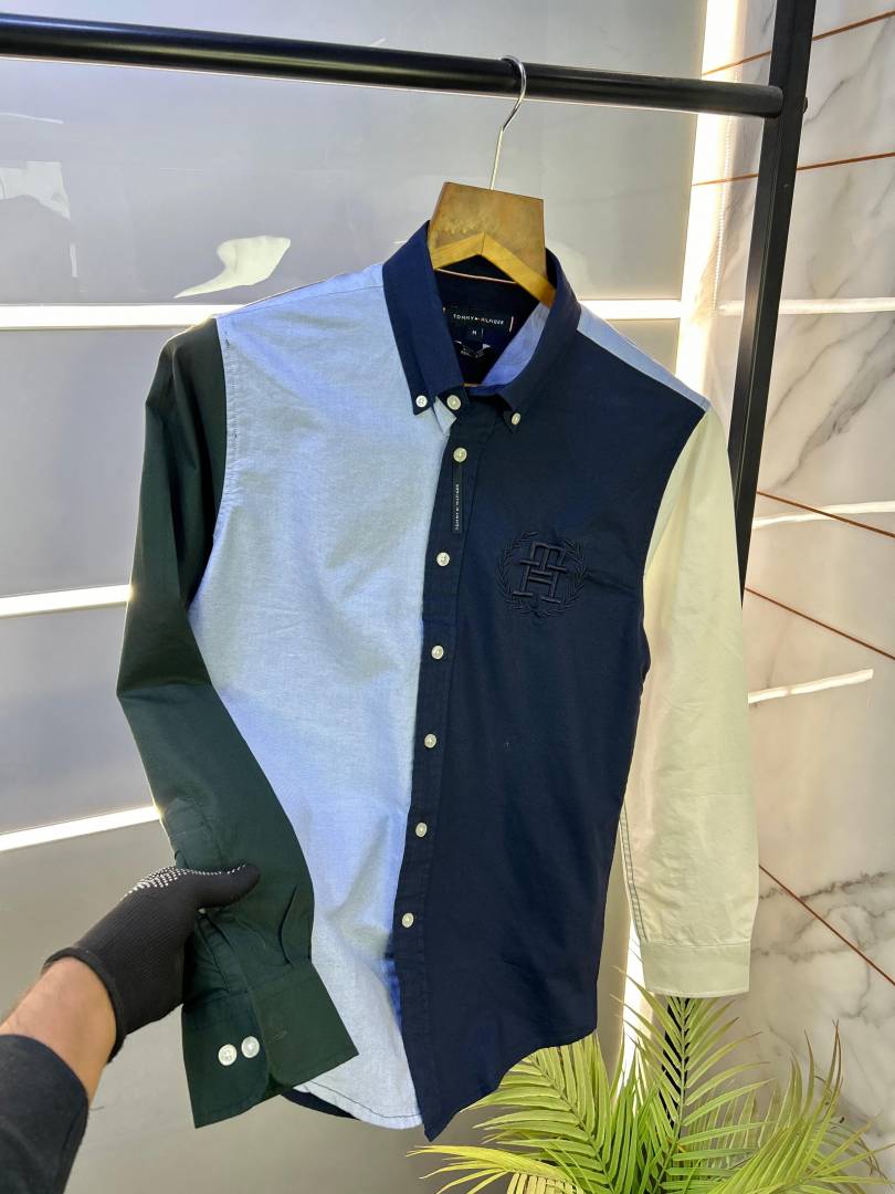 Tommy_Hilfiger Embroidery Logo Oxford lycra Navy Premium Shirts F2419-N1