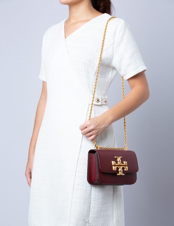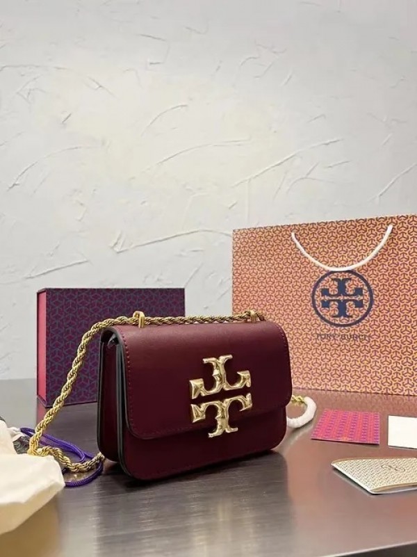 Tory_Burch Eleanor Premium Quality Shoulder Bag With OG Box & Dust Bag (Wine - 564)