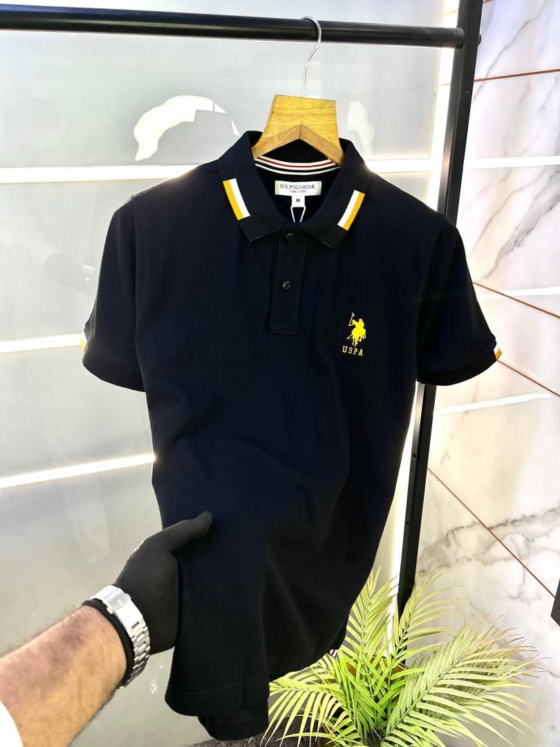 Us Polo Black Back Printed Collar Neck Premium T-shirt F2837-BL