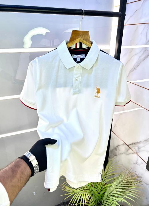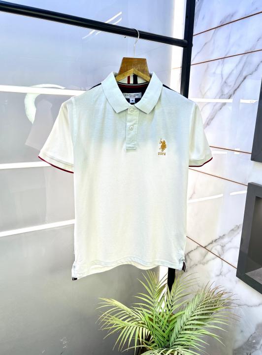 Us Polo White Back Printed Collar Neck Premium T-shirt F2837-WH