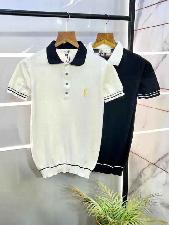 Ysl White Knitted Polo Premium Collar Neck T-shirt F3131-WH